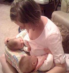 Es muy cómoda para los niños gemelares y para las madres con cesárea pues el peso del bebé no descansa en el abdomen; a menudo también se recomienda para las madres con grietas en los pezones, la cabeza del bebé descansa en una de las manos de la madre y el resto del cuerpo a lo largo del mismo antebrazo.